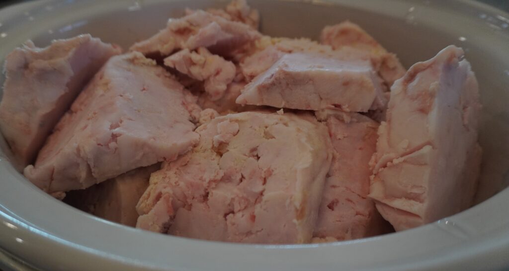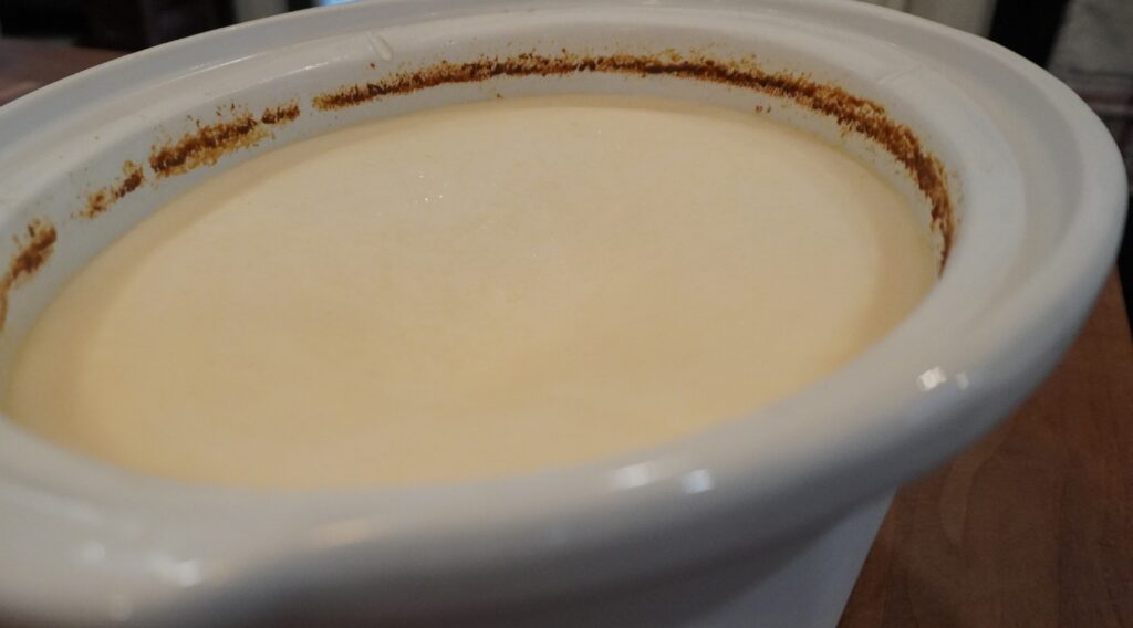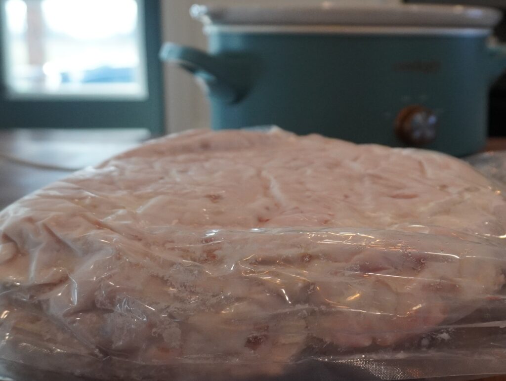 The way I choose to render our lard is by putting it all in the crock pot. This makes it completely hands off and I can go about my day.