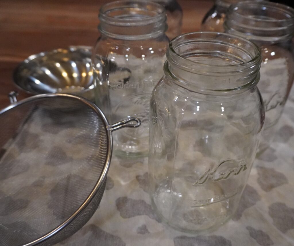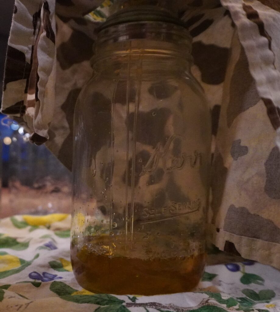 Let the lard cool so that it is not scalding but you don’t want to to solidify. You want it to be pourable so you can pour the lard into a mason jar with a lid.