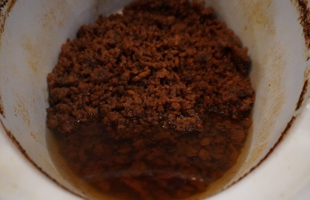Now, after it has cooked for eight hours you could stop there, let it cool slightly and pour into your jars and be done. The reason I didn’t stop but choose to render two more times is because I was trying to get rid of as much impurities as I could. I wanted to get it as clean as I could so I could possibly bake with this lard.